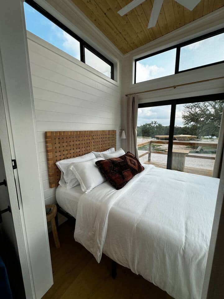Unwind at the Blue Moon Tiny Home nestled along the Texas wine trail. Accommodating up to four guests, this charming tiny home boasts luxurious comfort with a separate bedroom and loft featuring queen-sized beds. Enjoy modern amenities like a fully-equipped kitchen and full bathroom. Wake up to stunning hill-country views through the bedroom's massive windows that open onto the patio. Ideal for couples, families, or friends seeking a peaceful escape surrounded by nature. We're located in the heart of the Texas Wine Trail - minutes away from local wineries and no more than a 20 minutes drive to Fredericksburg or Johnson City. We're situated on 14 acres of undisturbed land and our goal is to create a modern retreat in the Hill Country.